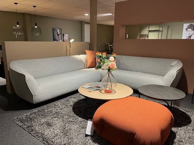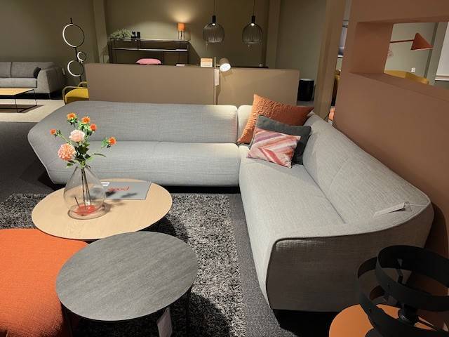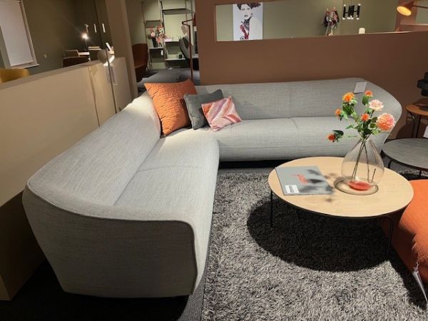 Hoekbank Turia van Pode is gestofeerd in de stof Essential 8 lichtgrijs